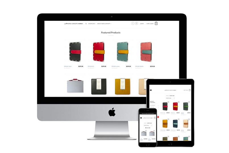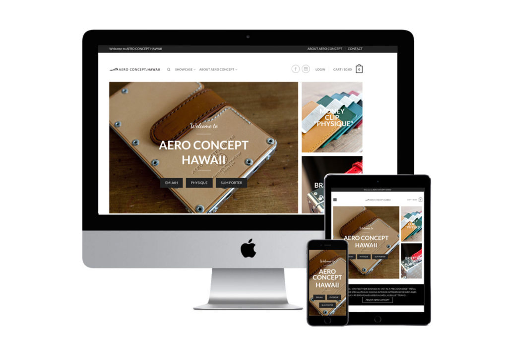 小さな町工場で生まれたエアロコンセプト。航空機部品の製造に用いられる精密板金加工技術を応用したアルミ合金、イタリア産ヌメ皮のコンビネーション。独特の雰囲気を持つブリーフケースやカードケース等の製品は、見た目の美しさだけでなく機能性や日本の物作りの精神とともに、コアなファンに支えられているブランドです。エアロコンセプト初の米国進出となるハワイで、エアロコンセプトハワイとしてオリジナル刻印が施された、ハワイ限定商品を扱うEコマースサイトを制作させていただきました。