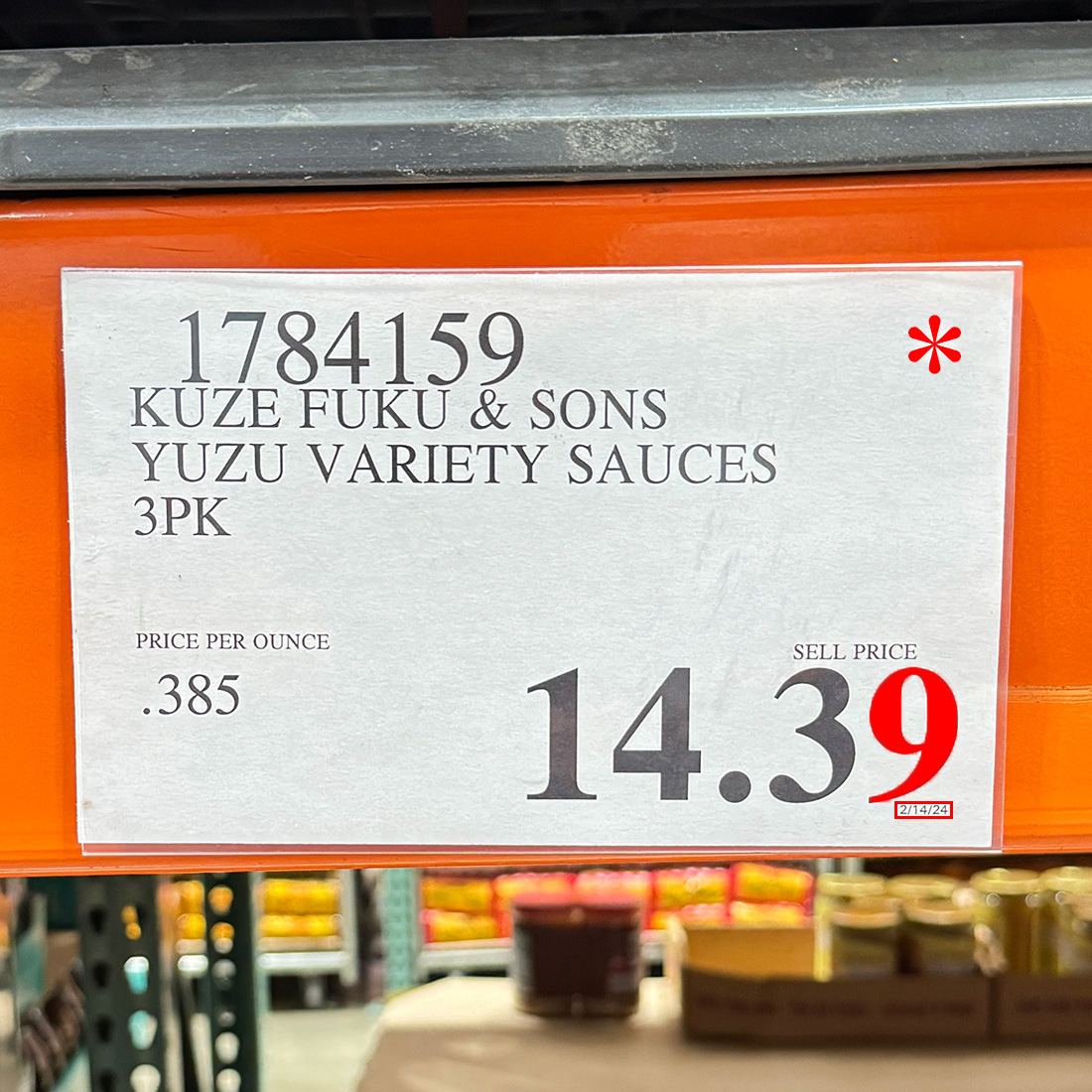 こちらも7で終わるプライスカードなのですが、.97 は倉庫独自のマネージャー特価で、驚くほどの安い場合があるそうで、早く無くしたい商品が.97 だそうです。これらマネージャー特価の商品に多いのが、右上に付されたアスタリスク(*)がある場合が多く、ディスコンティニュー(今後再入荷の予定がない商品)に付されるそうです。コスコの社員は「デススター」と呼んでいるらしいです(笑)