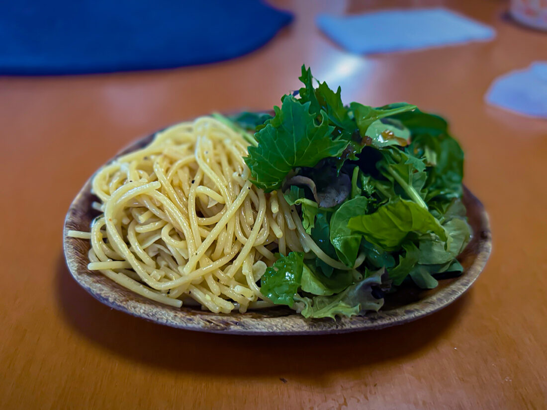 夕飯は日本から泊まりに来ている友人たちと、ニンニクたっぷりのペペロンチーノ。マオファームのグリーンミックスにオニオンドレッシングをかけて、ぐりぐり混ぜて食べるのが我が家流。今日はいろんなことを考えさせられる一日でした。