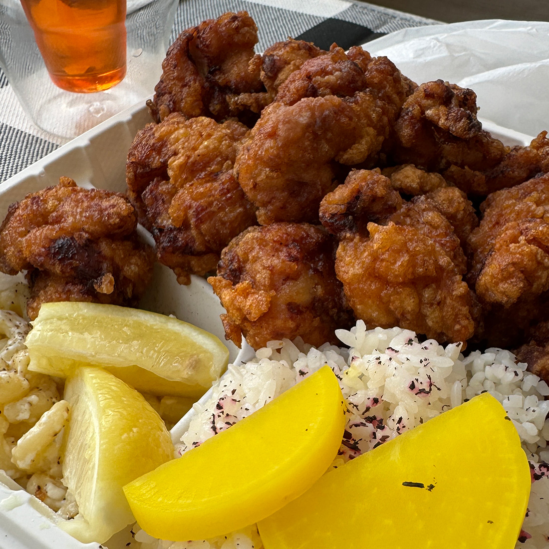 KFC、ポパイ・ルイジアナキッチン、マウイ・マイクス、L&Lドライブインなど、ハワイでも美味しいチキンを食べられるお店は沢山ありますが、外はカリッと香ばしくジューシーで、ニンニクと生姜の風味が効いていて、醤油の旨味が染み込んだ日本の鳥の唐揚げはここで食べられます。いやぁ、美味しかった!!