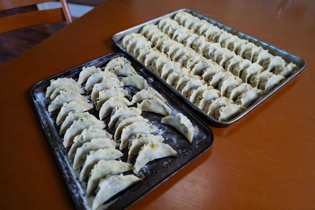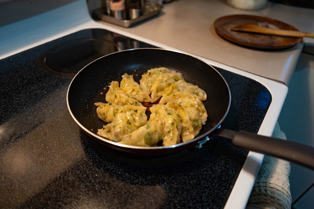 キャベツを切り始めてから焼き終わるまで3時間。ようやくケンちゃん餃子の出来上がりです。餃子作りは手間がかかる作業ですが、包み終えた時やひとくち入れた時の満足感があるので好きな料理です。余った餃子は冷凍庫で保存が効くし、冷凍のまますぐに蒸し焼きできるので、束の間の一人生活に便利な食材です。次回は誰かのレシピをコピーして、今までとは違う餃子を作ってみたいと思います。おすすめがあればぜひ教えてください。