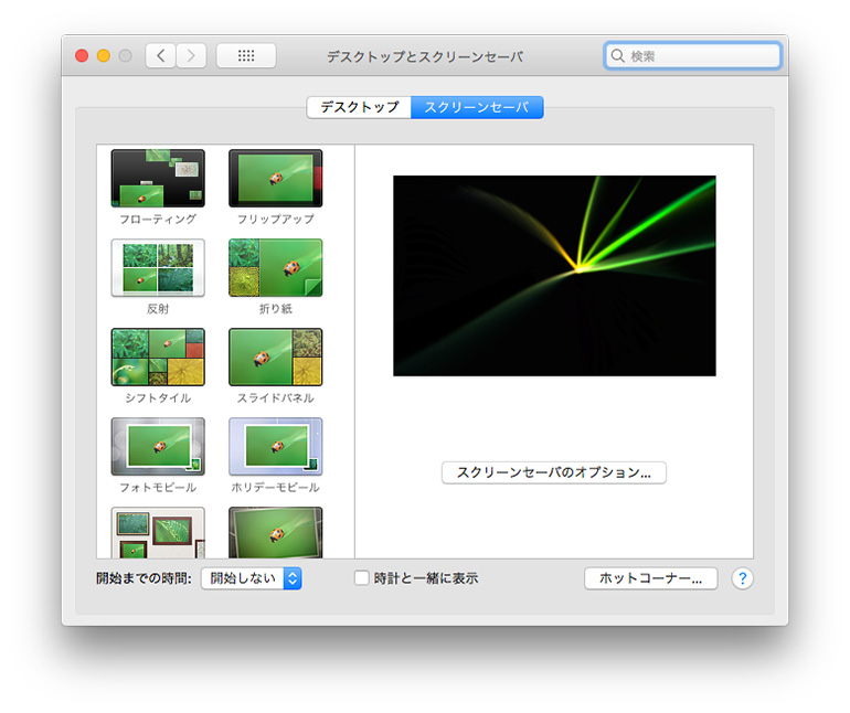 「スクリーンセーバ」を選ぶと、右下にホットコーナーがありますのでクリック。