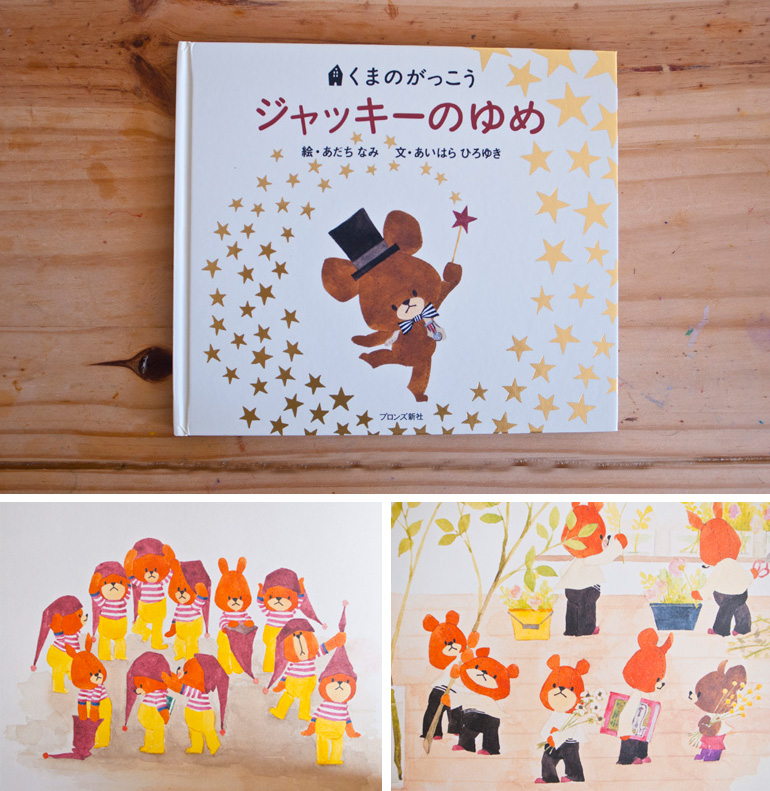 12ひきのくまのがっこう。11番目までは男の子で、12番目の唯一の女の子が主人公のジャッキー。『ジャッキーの大きくなったら何になりたいの?』とお兄ちゃんたちが話しかけます。次々と非現実的なまさに夢を語り始めるジャッキーに、お兄ちゃんたちがアドバイスをしながら物語が始まります。お兄ちゃんたちの身近にある将来の夢に心が暖かくなる一冊。大人気のくまのがっこうシリーズの『ジャッキーのゆめ』おすすめです!