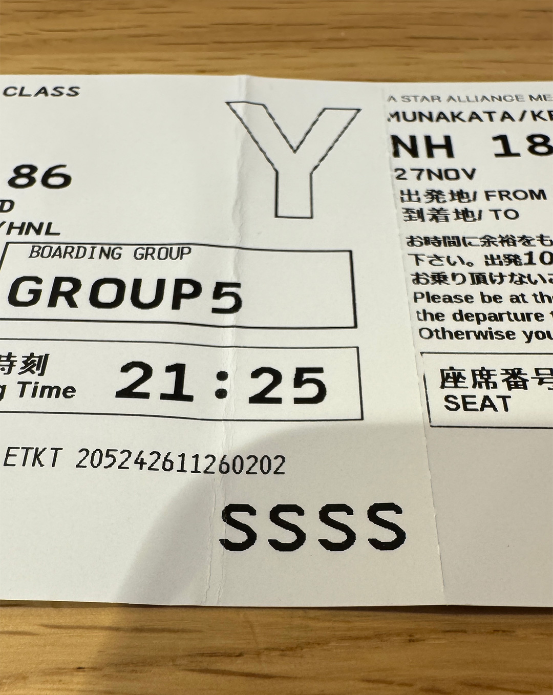 帰国前、羽田空港で最後のディナーを楽しんでいました。何の気なしにボーディングパスに目をやると、SSSSの怪しげなマークが。出国時に厳しいセキュリティ検査を受けることになるSSSS (Secondary Security Screening Selection)に選ばれた様です💢 何を隠そう、実は今回で2回目なので調べたところ、