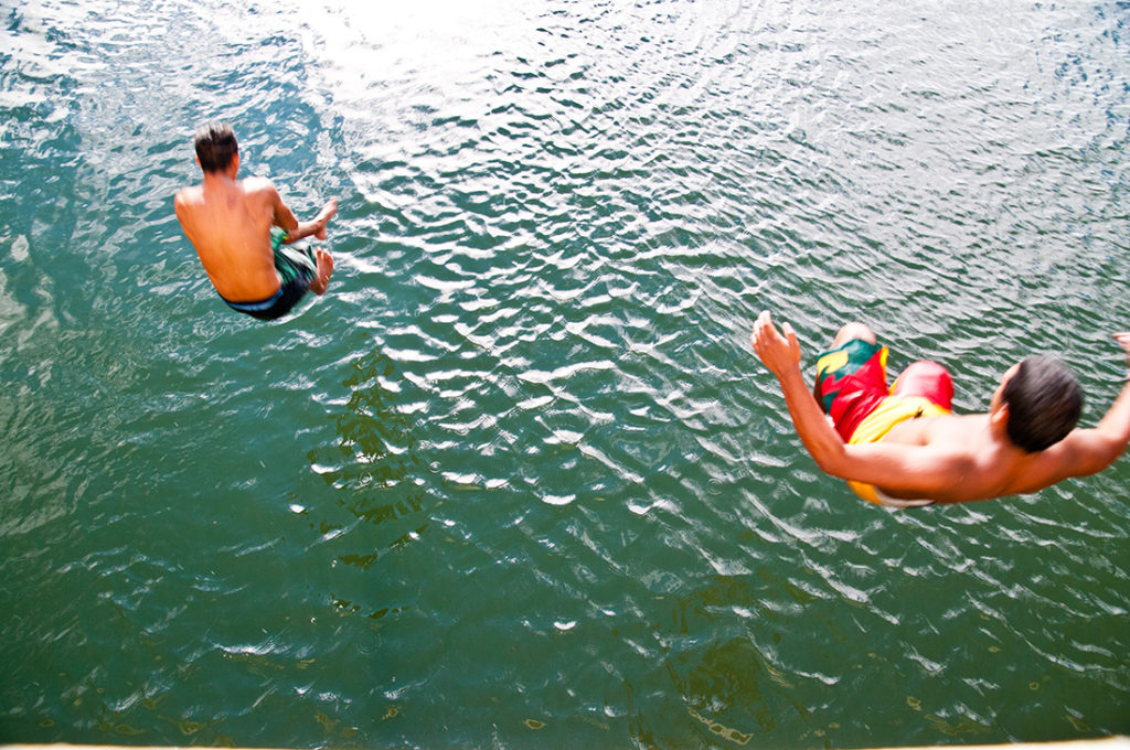 ハワイが教えてくれたこと。』の帯になった写真。場所はノース・ショアのランドマークであるアナフル・ストリーム・ブリッジ(通称レインボーブリッジ)。『写真撮らせてっ!』とお願いしたら次から次へ飛び込むもんだから、お互いにびっちょびちょになりながらの思い出深い撮影でした。